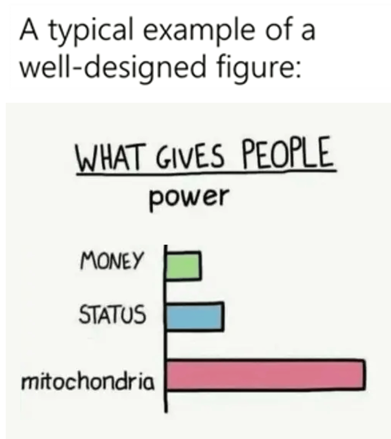 Don’t overcrowd your figures. Readers should be able to instantly recognize the graph type, understand the axes, identify samples via the legend, assess differences, evaluate spread and deviations, and interpret individual data points. This is only possible when the data are clearly discernible, colors are unambiguous, and axis labels are readable and clear. What happened in the figure above is an example of chartjunk, as outlined by Rougier et al.