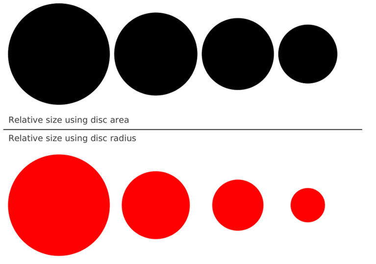 Another example from Rougier et al.: while differences in disc radius may be easier to distinguish visually, viewers typically interpret displayed differences as differences in area.