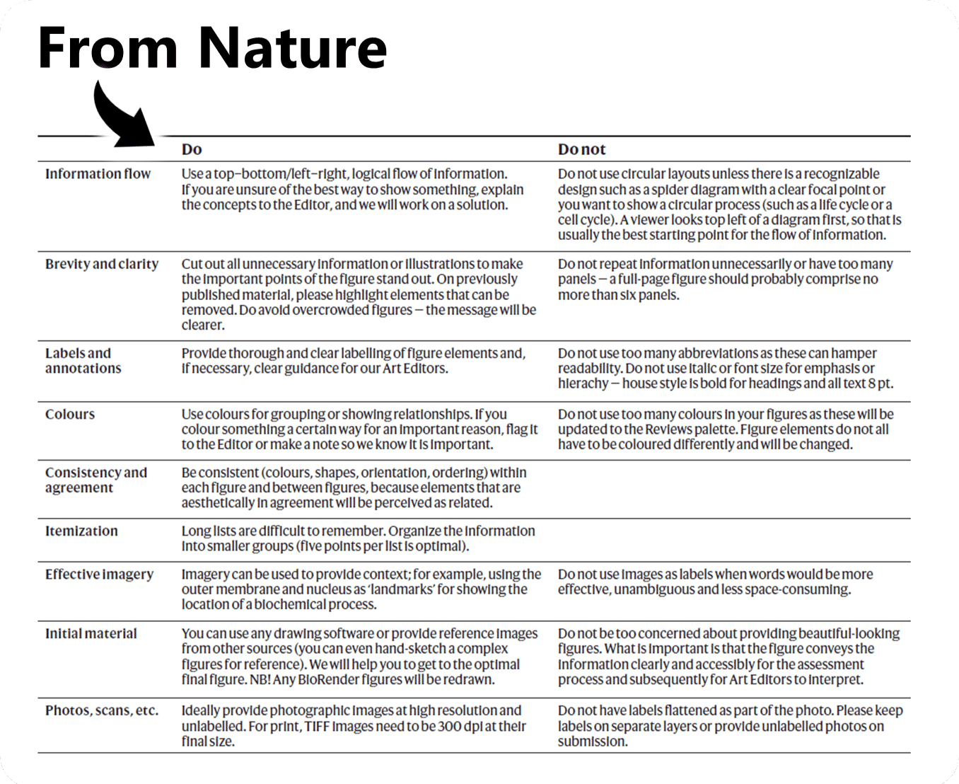 Checking the journal guidelines is not only important for your submission. As in this case with Nature, they can also provide generally applicable best practices.