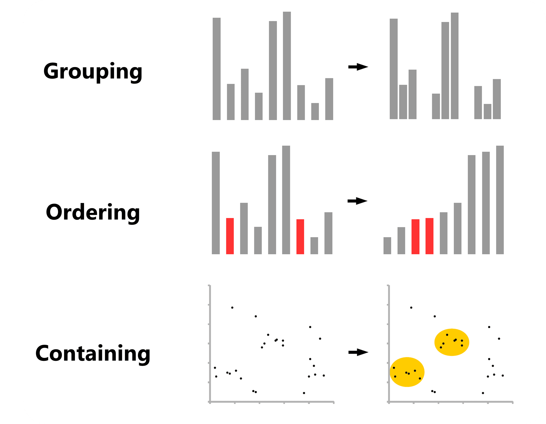 As outlined by Aiora Zabala in “Designing More Effective Scientific Figures” (VTP Graphic Design, Cancer Research UK), grouping, ordering, and containing can help readers analyze data at a more hierarchical level and therefore process it faster.