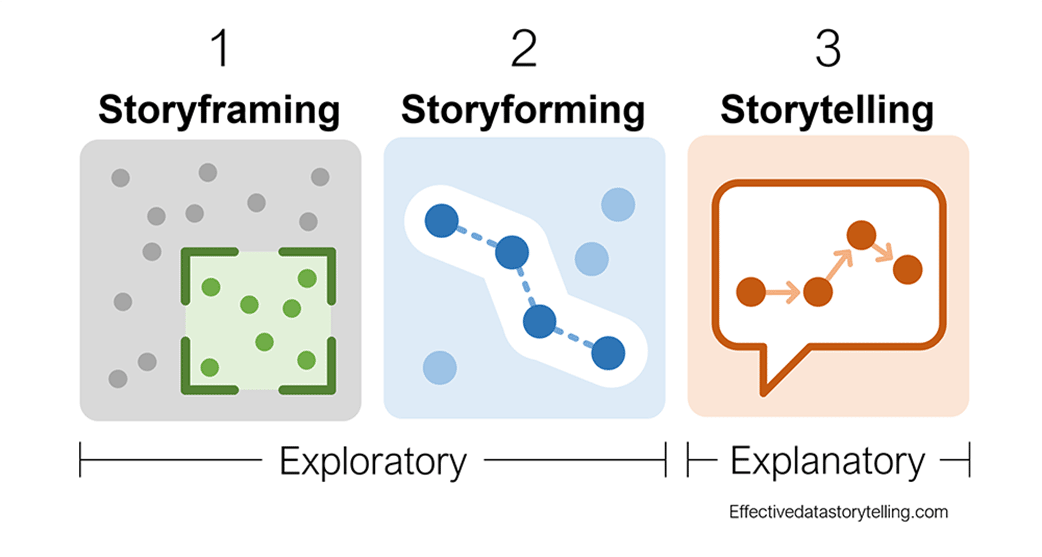 First, you want to decide which part of your overall data you want to share – i.e., what is your main message? Second, you choose the data that should be included and form the storyline - that is, what data your reader must see to be convinced. Finally, you tell the story - that is, you choose the wording, design the graphs, and do the fine-tuning. Although this comes from a blog focused on sales data, I think it is a well-written piece that is helpful to scientists as well.