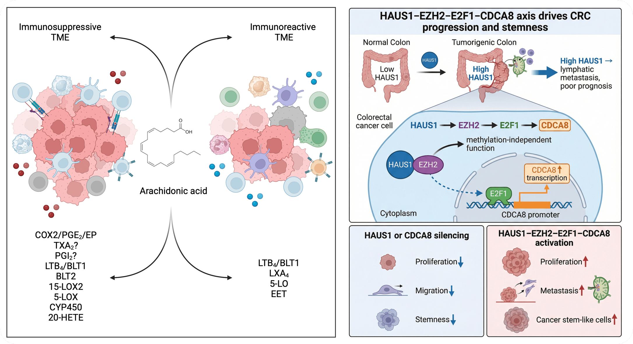 While the graphical abstract on the left is obviously very reductionistic, the idea of listing the enzyme and factors gives you a clear understanding of what changes (at least if you work in the field). On the right, I really like the idea of the panels at the bottom if you need a clear yet simple way of communicating.