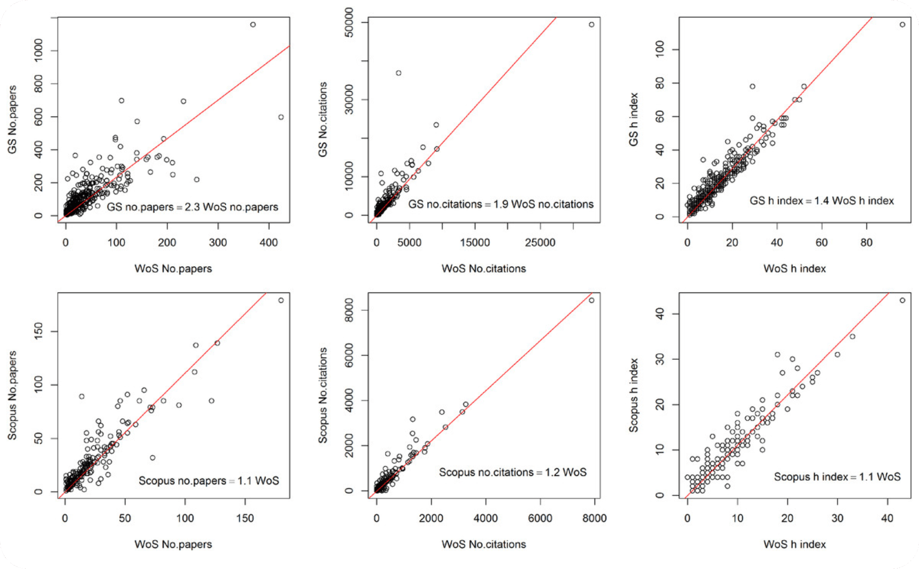 Indeed, different literature compilation systems contain different data. Consider that new papers get published every other minute. There is a huge amount of data, and tracing article types, citations, or retractions therefore becomes a challenge. Contributing to this problem is the inconsistent formatting of citations. In the past two decades, so-called predatory journals and papermills have seen a strong rise, producing junk or fake science to generate money. These pieces of work are not always listed in all databases and thus are included in some analyses but not in others. Generally, we see a good correlation between the major indices, but differences do exist, as shown by Minasny et al.