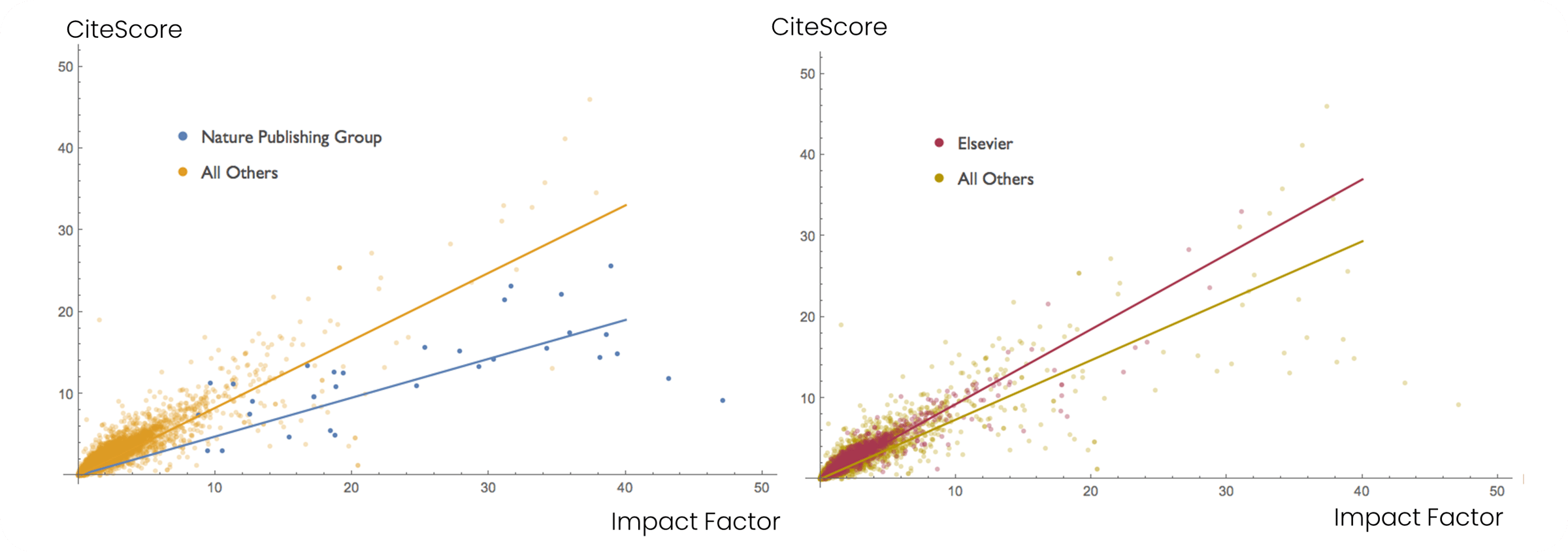 Click to enlarge. As we mentioned last time, in one of their blogs, Eigenfactor conducted a rough analysis of CiteScore results because when Elsevier launched CiteScore (via Scopus), it was positioned as an alternative to the Journal Impact Factor from Clarivate. It is questionable whether metrics such as CiteScore intentionally include such a broad range of article types - as this reduces the ranking of outlets like Nature that publish a large amount of community-focused communication.
