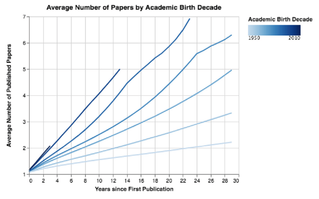 This graph is from the same paper we discussed earlier and indicates the ever-increasing pressure to publish as early as possible.