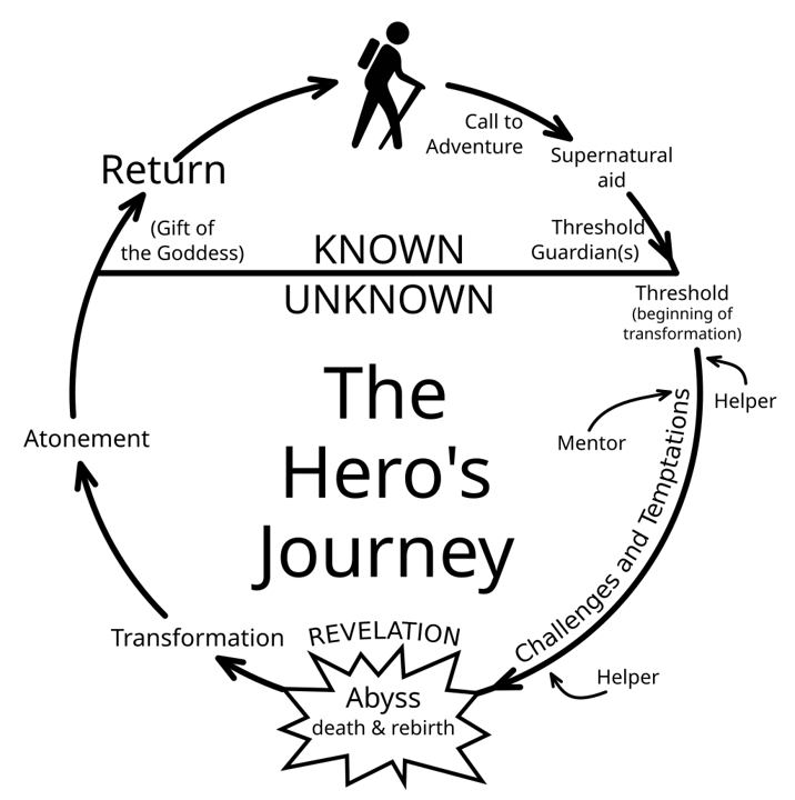 I include this depiction to show that the common Motivation – Obstacle – Solution framework is an oversimplification. The idea of the "Hero’s Journey" comes from a storytelling tradition in human culture. To use the power of storytelling in science, understand why the Hero’s Journey structure works so well emotionally.