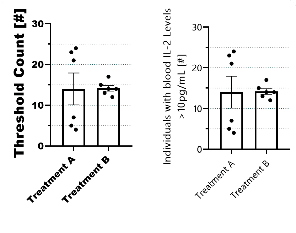 It was hard to come up with a y-axis label example that makes sense… anyhow, what I want to demonstrate is that A) excessively big labels seem odd even though you might think it helps readability, B) if your journal hasn’t got a corporate design, choose a proper font (not fitting Arial Black on the left, better Yu Gothic UI Semilight on the right - it doesn’t need to be special, but choose something simple yet modern), C) “Threshold Count” is very unclear, and even if you need two lines, go for something understandable. By the same token, name the treatment or sample type in your legend properly. Sometimes you cannot avoid abbreviations, but perhaps you can choose ones that can be “read,” e.g., “HEK-IL2 KO” (cell line - proten/gene - treatment) instead of shorter yet cryptic labels like “HI2K”.