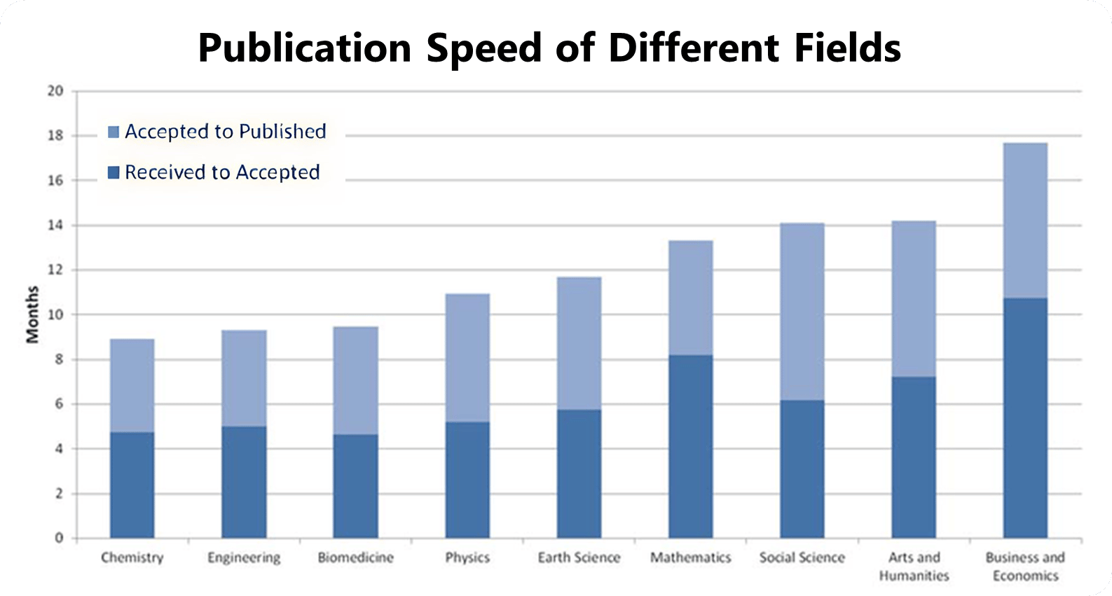 Click to enlarge. Björk and Solomon analyzed Scopus data from 2012 to compare publication times across different fields - I found the results quite interesting.