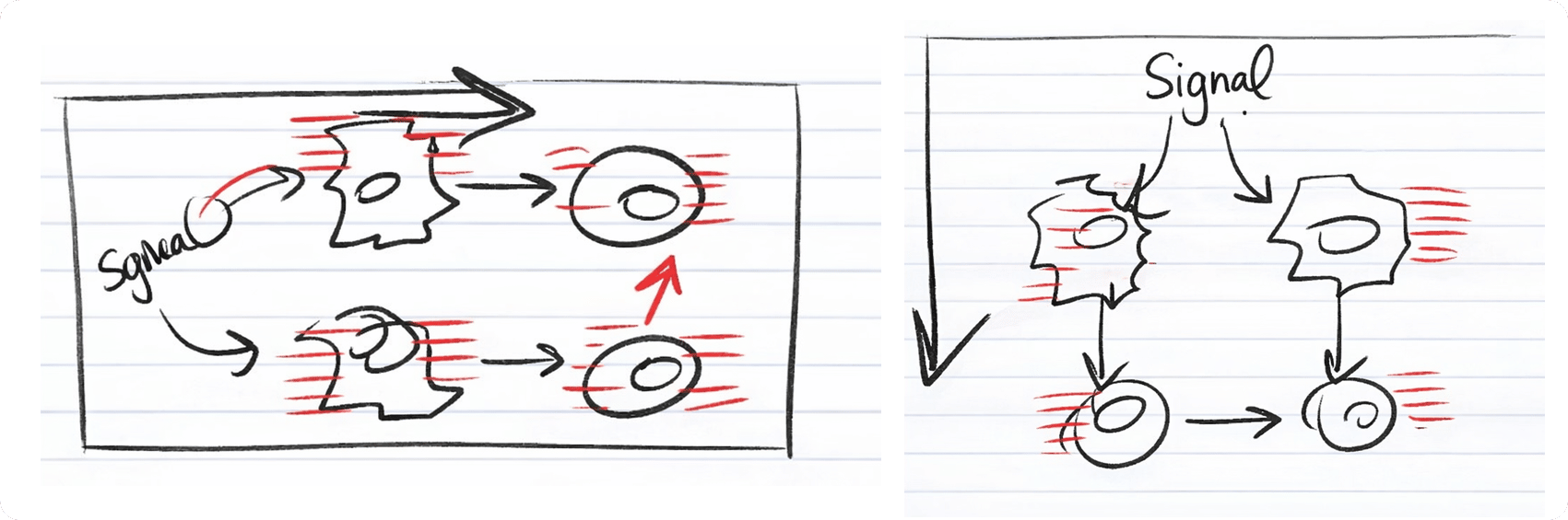 This is clearly a very confusing design, making it difficult to follow what is happening.
