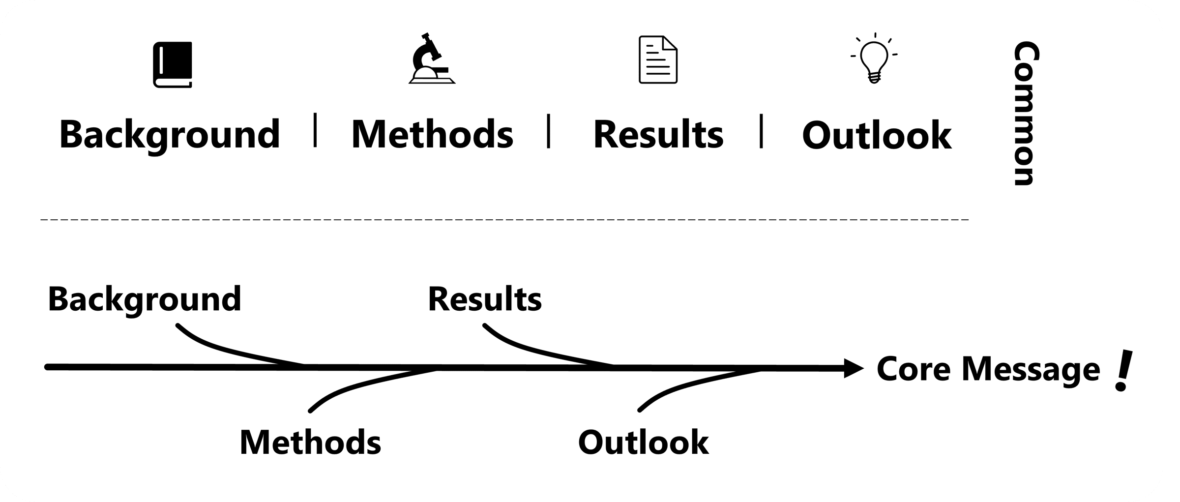 Most people think about each section individually, focusing on how to make the information in each stand out. Another approach is to view them all as contributions - steps toward one key message. You decide which sections help you tell the story and which will be most memorable.