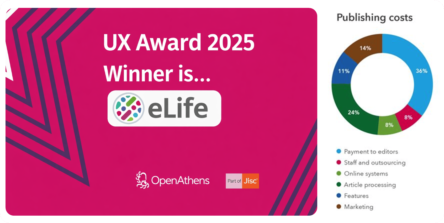 Since 2023, eLife has replaced the traditional accept–reject decision with a model in which manuscripts are published as “reviewed preprints” with public peer reviews and editorial assessments - leading Clarivate to withdraw its Impact Factor. In contrast, eLife received the OpenAthens UX Award, which recognizes publishers and scholarly content providers that deliver outstanding user experiences for accessing research and academic resources. Overall, eLife has been comparatively innovative and transparent, even sharing information about its expenses publicly.