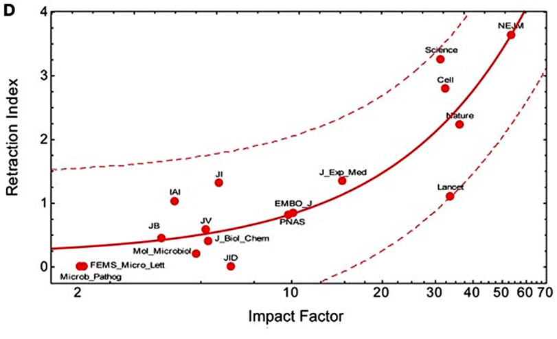 The topic is complex - as we discussed, if journals do not list their publications in major indices, retractions are not measured either. Indexing means that a journal’s articles are included in searchable academic databases, allowing researchers and algorithms to discover, cite, and count. Second, a high impact factor, as shown by Alex Etz (and others), often also means relatively higher retraction rates.