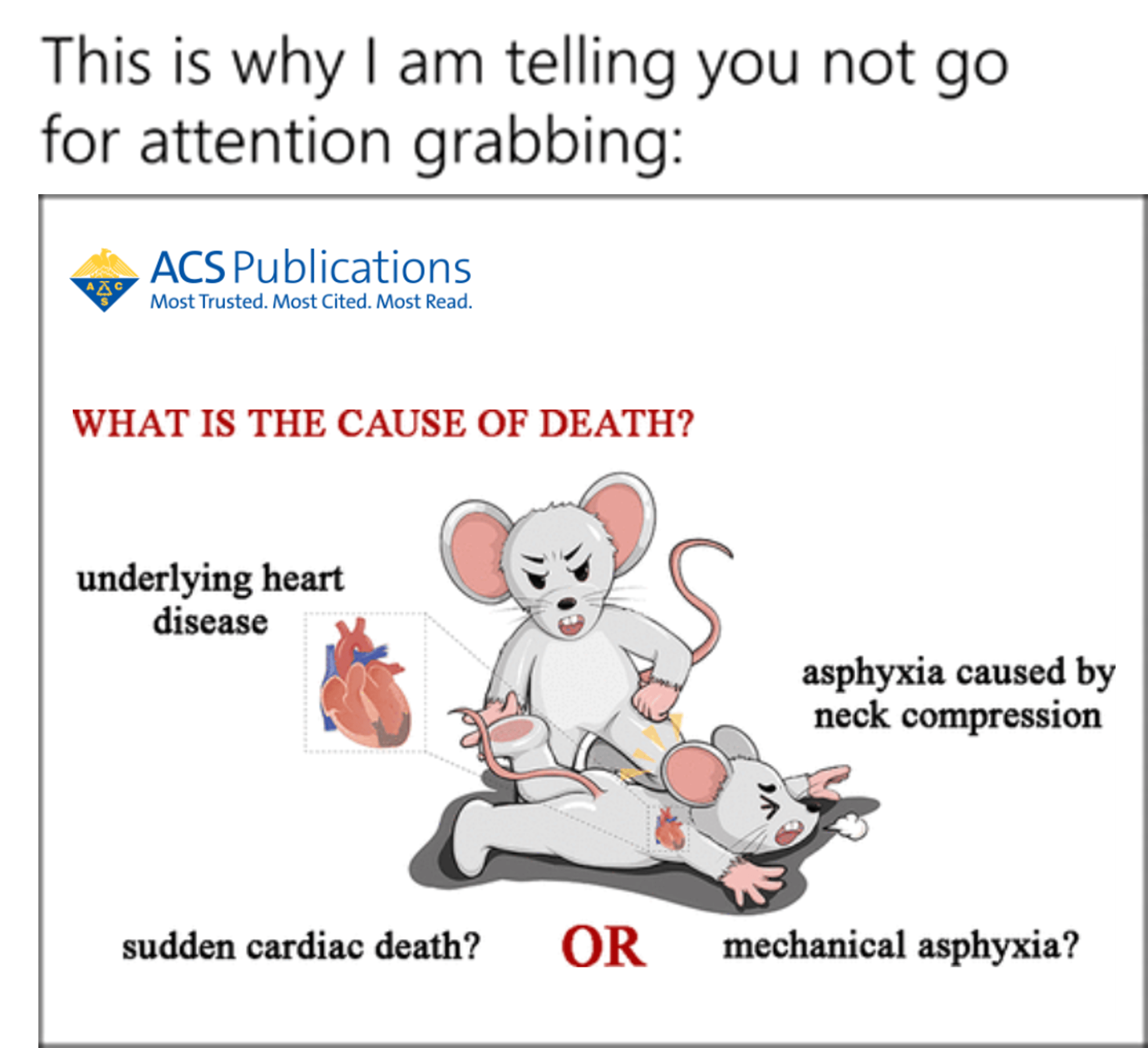 Your visual abstract should create intrigue, but not through an outstanding feature like an ad or a YouTube thumbnail does.